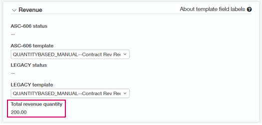 - In the Revenue template 1 and/or Revenue template 2 field, select the quantity-based revenue template. Only one revenue template needs to be quantity-based.