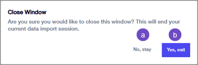 Yes, exit: Closes the import service. The import service keeps changes that you made to the import sheet you were working on This option behaves the same as Exit and save records above.