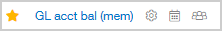 Reports can have multiple icons. In the following example, the GL report has icons indicating that it's a favorite, memorized, scheduled, and public.