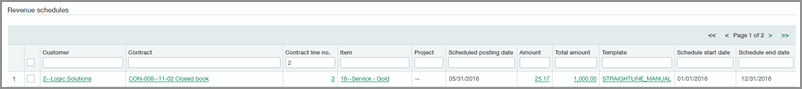 Columns in the results list section now have a filter capability. Use the column filters to further refine the schedules or contract lines on which you want to act.