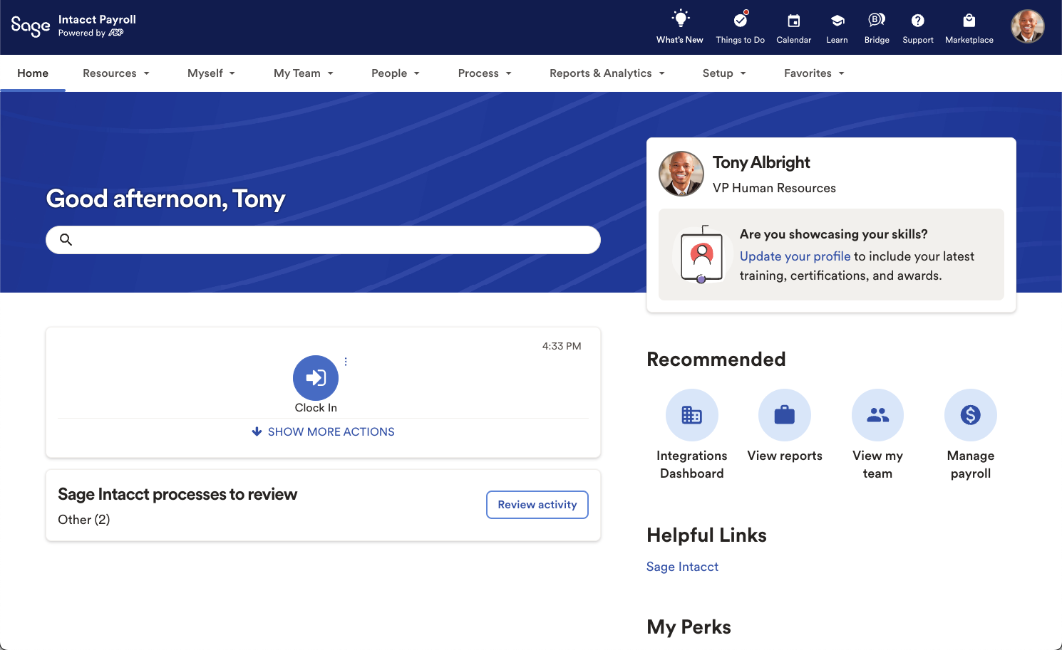 Sage Intacct Payroll powered by ADP is the only full-service payroll and human capital management (HCM) suite that works seamlessly with Sage Intacct. This affordable, scalable solution provides you with an easier way to handle your day-to-day HR activities in real-time. You can do more with less effort, while gaining greater insight by syncing payroll, people, and accounting data.