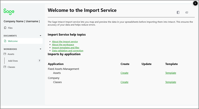 Imports of 10 assets or less are now processed online, making it easier for you to test your import file before running a full import. Error messages are displayed immediately in the import workspace, allowing you to correct them and import directly to Intacct without waiting for offline processing.