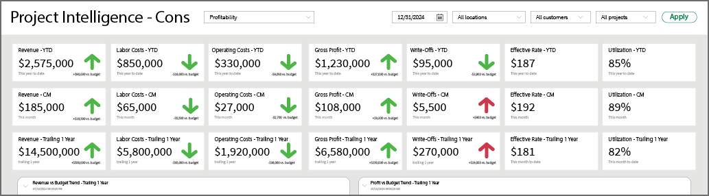 Consolidated dashboards in Sage Intacct Project Intelligence