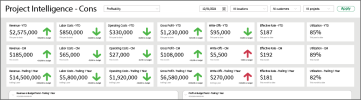 - Open the application switcher and select Dashboards > Project Intelligence – Cons.