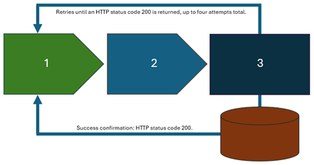 - If a failure occurs, the call is retried until a successful HTTP status code of 200 is returned to Intacct, up to 4 attempts total.